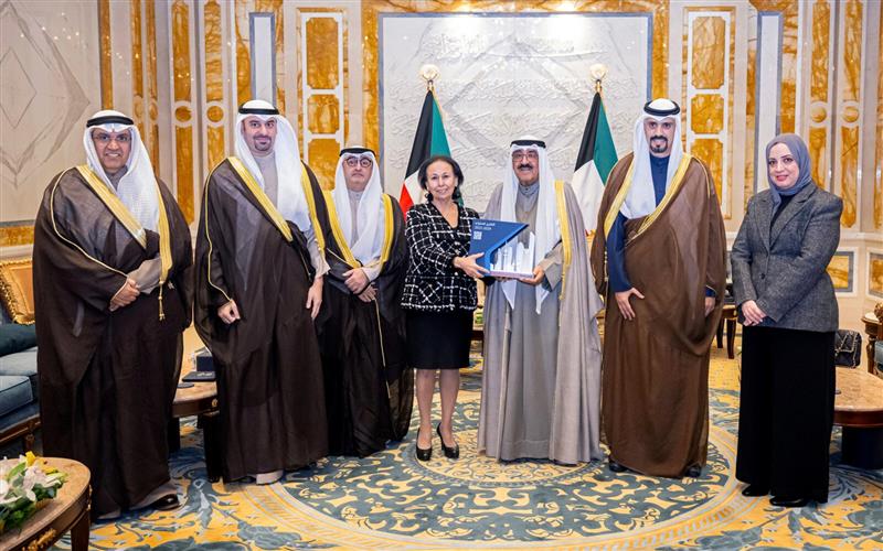 H.H. the Amir Sheikh Meshal Al-Ahmad Al-Jaber Al-Sabah hosted the Deputy Chairman of the Board of Directors of Kuwait Direct Investment Promotion Authority (KDIPA) during the reporting period Mrs. Wafa Ahmed Al–Qatami, alongside the Director General of KDIPA H.E. Sheikh Dr. Meshaal Jaber Al-Ahmad Al-Sabah, and KDIPA Deputy Assistant Generals where they presented the Tenth Annual Report for the fiscal year FY 2024/2025, at Bayan Palace, on December 23, 2025.